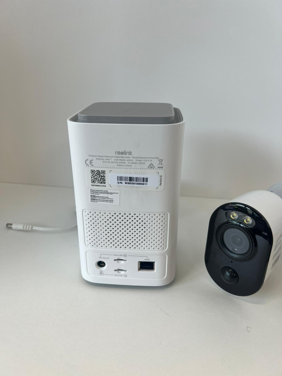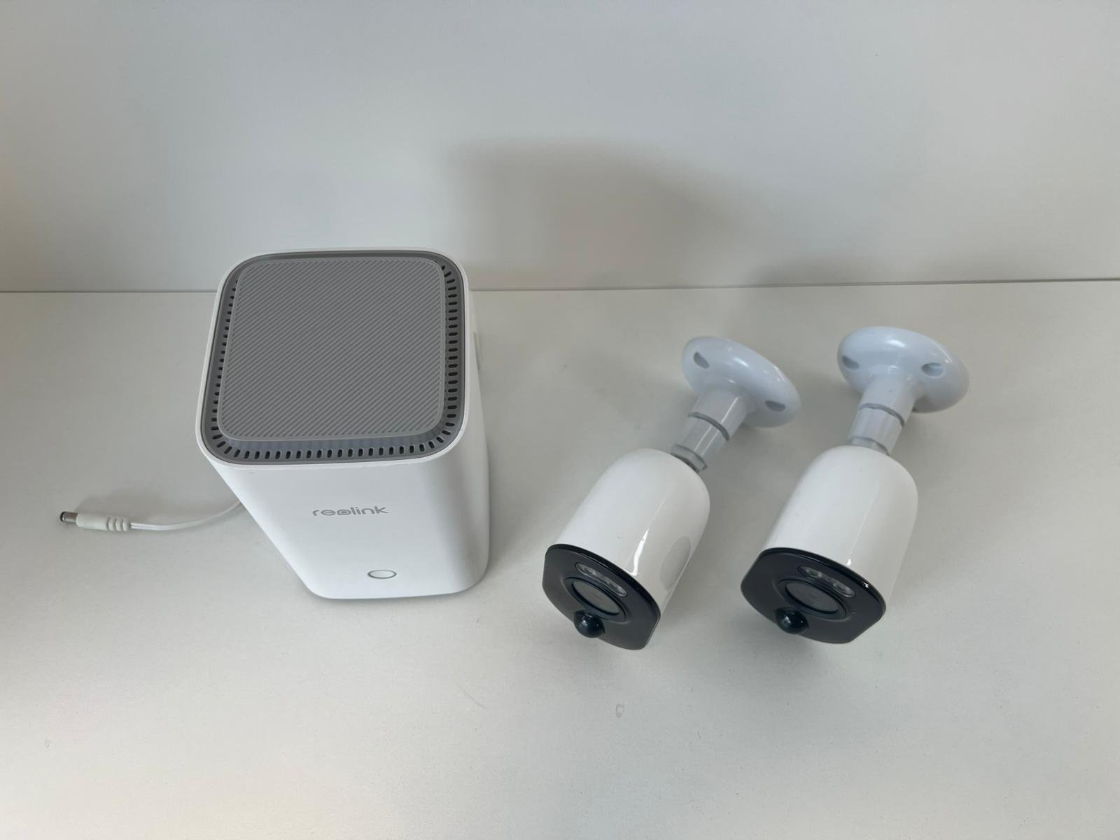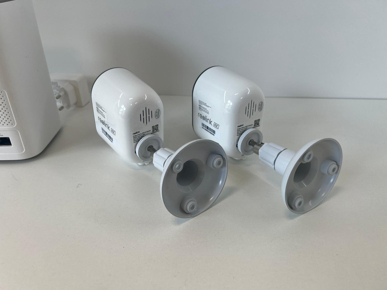 Komplektacija: Reaolink Argus 3 Ultra kameros (2 vnt.), Reaolink Home Hub centrinė stotelė ir maitinimo laidas.