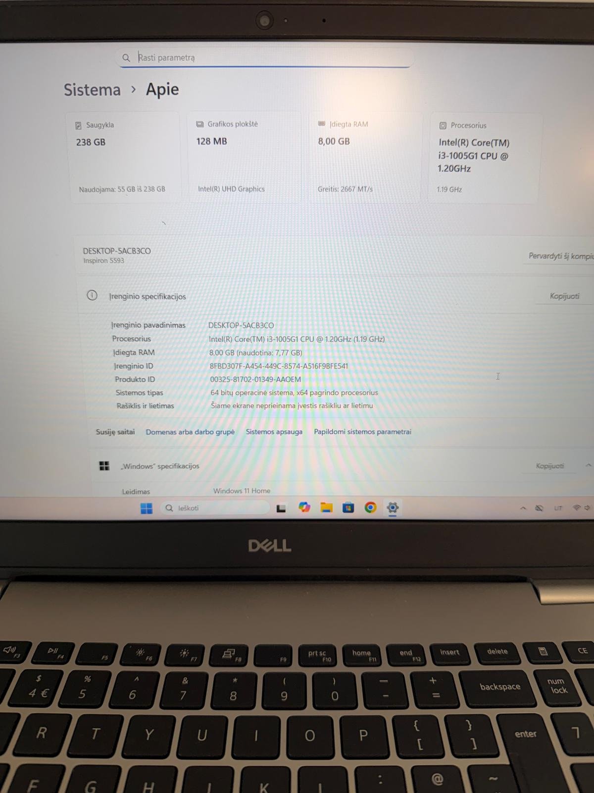 Naudotas, neblogos būklės Dell Inspiron 15 nešiojamas kompiuteris. Klaviatūra graži, klavišai nenutrinti. Kompiuteris yra paruoštas naujam savininkui, suinstaliuoti Windows 11 Home. Baterija laiko apie 1 valandą. Suteikiama 3 mėnesių garantija.