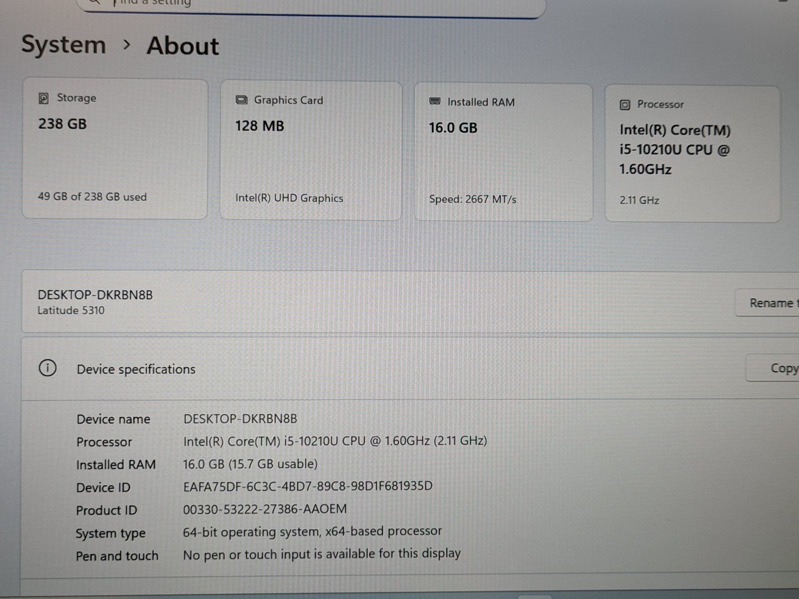 Dell Latitude 5310 – Intel i5-10210U / 16GB / 256GB SSD