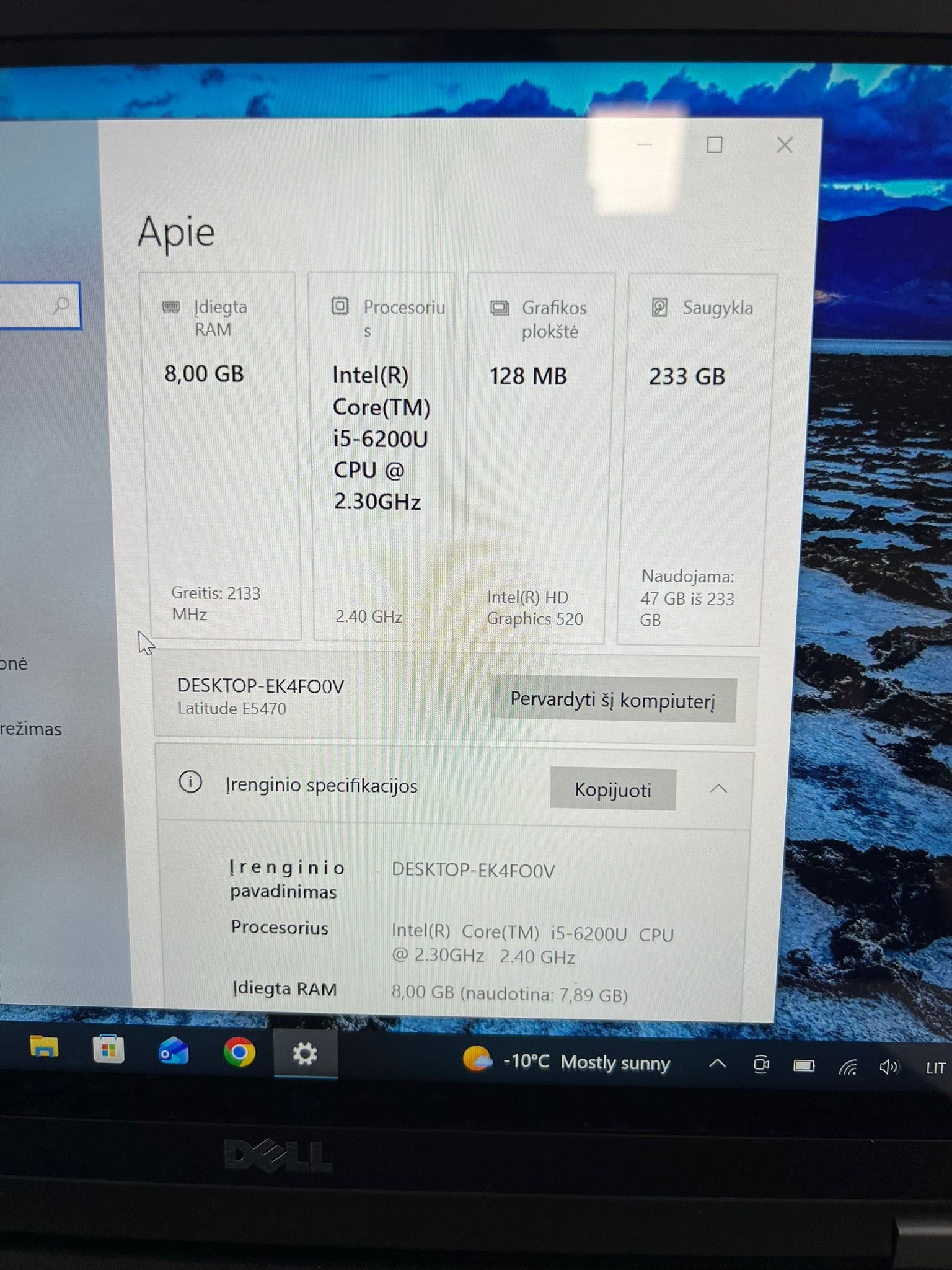 Naudotas Dell Latitude E5470 nešiojamas kompiuteris. Kompiuteris pilnai veikiantis, yra korpuso pabraižymai, naudojimo požymiai. Klaviatūra graži, klavišai nenutrinti. Kompiuteris yra paruoštas naujam savininkui, suinstaliuoti Windows 10 Pro, kompiuteryje yra įdėtas 256GB SSD kietasis diskas, kuris paspartins kompiuterio darbą. Kompiuterio ekranas yra unikalus tuom, jog yra liečiamas (TOUCH). Baterija laiko apie 3 valandas. Suteikiama 3 mėnesių garantija.