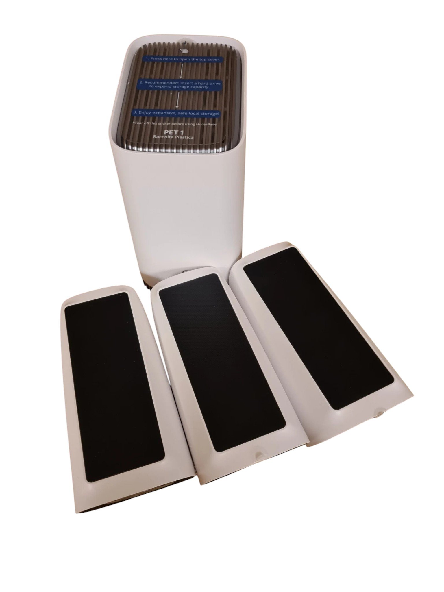 - Ryšys: Wi‑Fi 2.4 GHz, jungiamas prie HomeBase 3; ne tiesioginis Wi‑Fi
