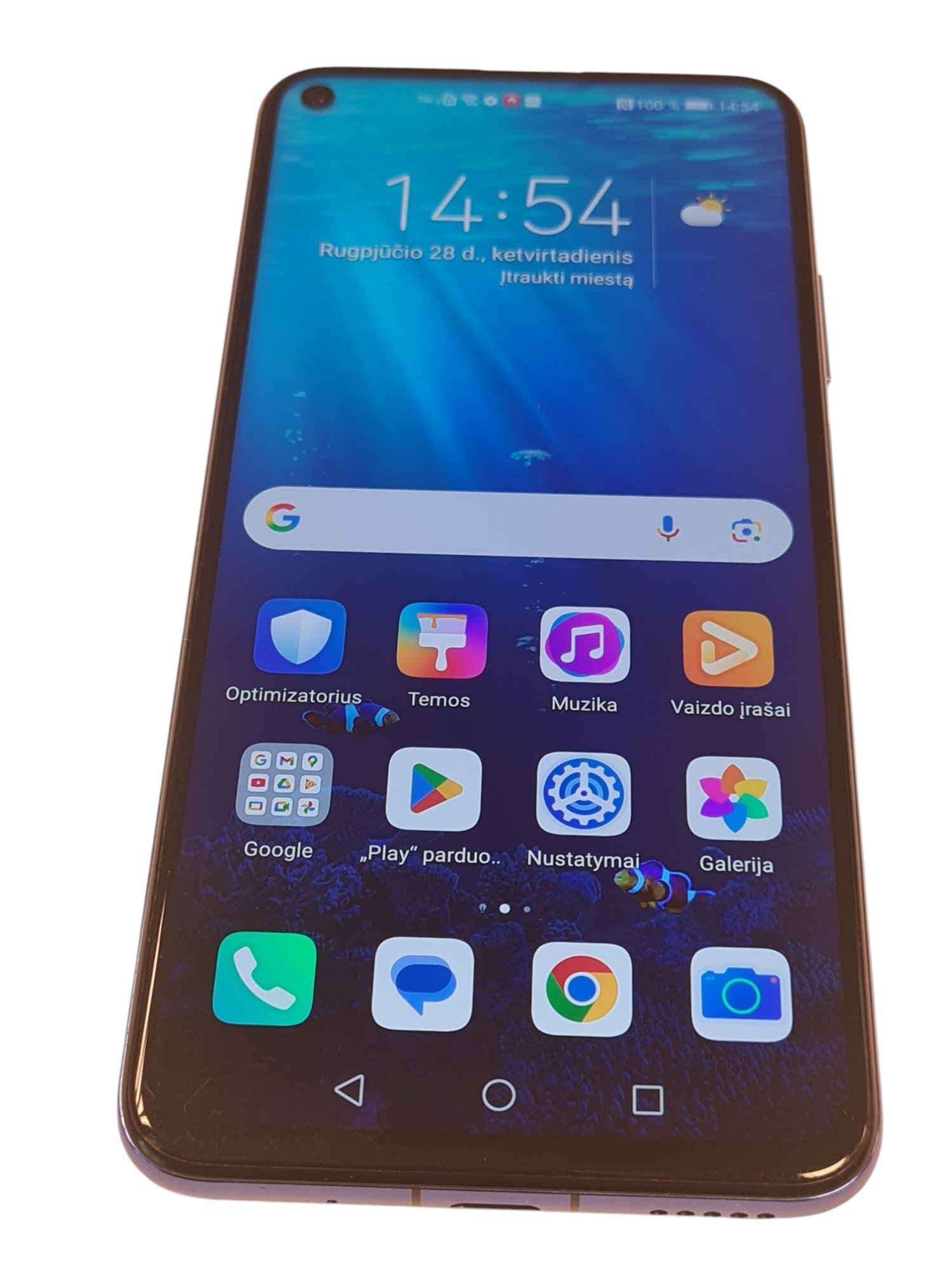 Naudotas Honor 20 išmanusis telefonas. Honor 20 išsiskiria 6.26 colio Full HD+ IPS LCD ekranu su 2340 × 1080 pikselių raiška, užtikrinančiu ryškų ir aiškų vaizdą. Viduje veikia galingas HiSilicon Kirin 980 procesorius su 6 GB RAM ir 128 GB vidinės atminties, užtikrinantis sklandų daugiaprocesinį darbą. Įrenginys taip pat turi keturių kamerų sistemą, įskaitant 48 MP pagrindinę kamerą, 16 MP plataus kampo objektyvą, 2 MP gylio jutiklį ir 2 MP makro objektyvą, leidžiančią užfiksuoti įvairius kadrus. Priekinė kamera turi 32 MP raišką, idealiai tinka aukštos kokybės savęs portretams. Yra parduodamos prekės pabraižymai, naudojimo požymiai. Suteikiama 3 mėnesių garantija.