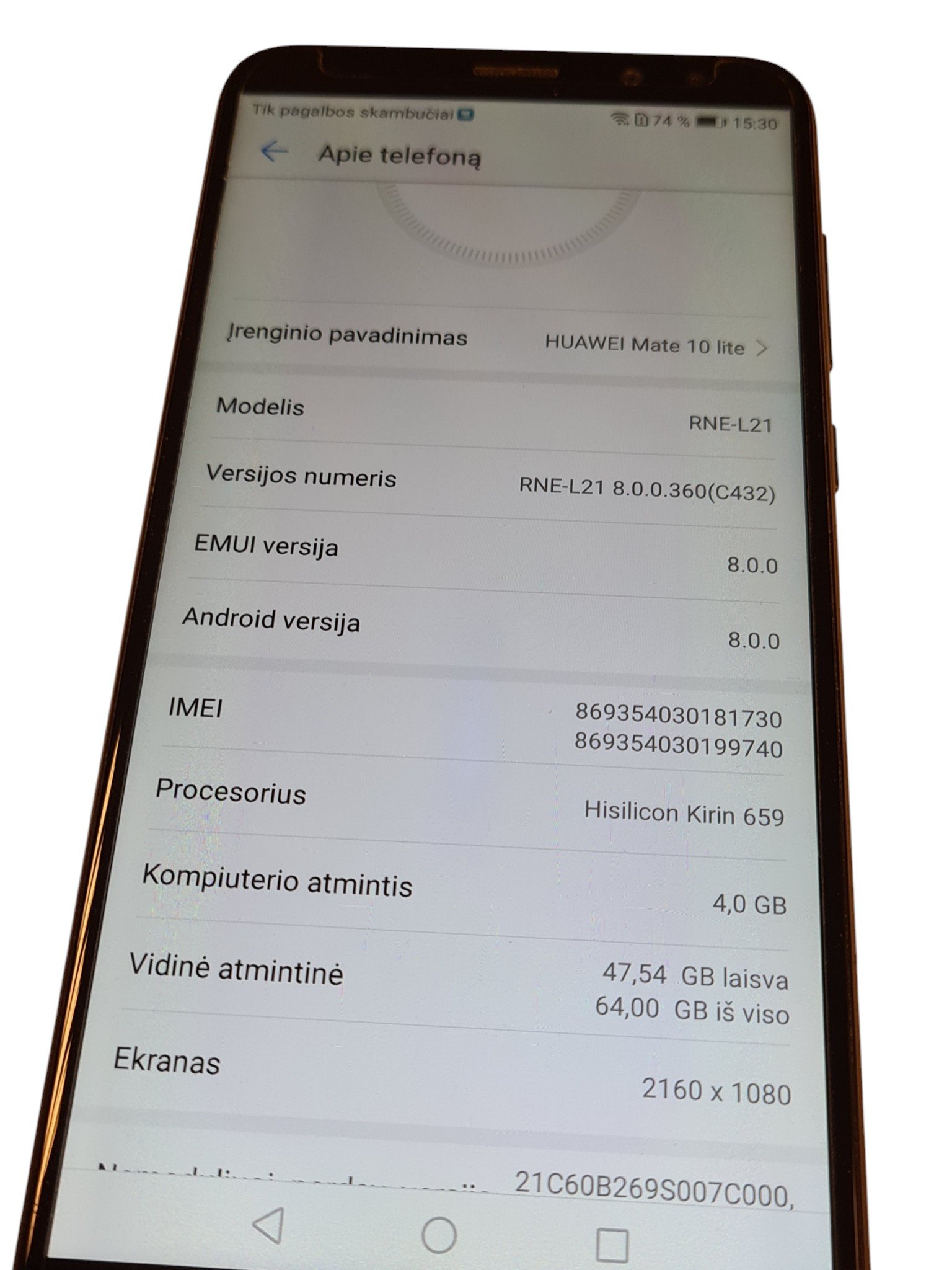 - Operacinė sistema: Android 8.0