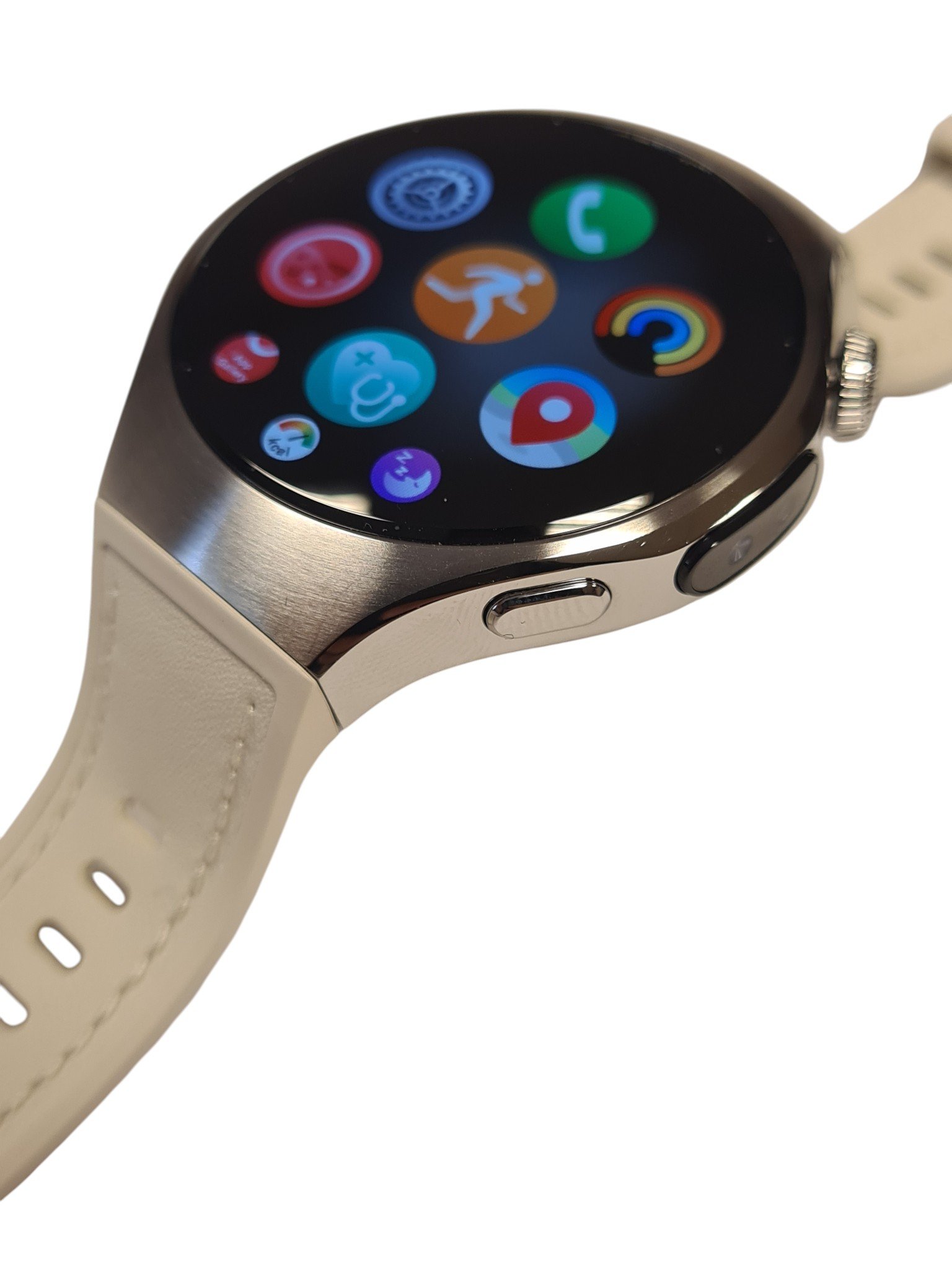 Ekspozicinis Huawei Watch 5 White išmanusis laikrodis. Tai elegantiškas ir kompaktiškas išmanusis laikrodis, pagamintas iš aukštos klasės 904L nerūdijančio plieno su safyro stiklu. Jis pasižymi 1.38″ LTPO AMOLED ekranu, modernia sveikatos stebėjimo sistema su EKG, SpO₂, kūno temperatūros bei arterijų standumo matavimais. Palaiko eSIM, turi tikslią dvigubo dažnio GPS sistemą, veikia su HarmonyOS ir išlaiko iki 7 dienų bateriją.