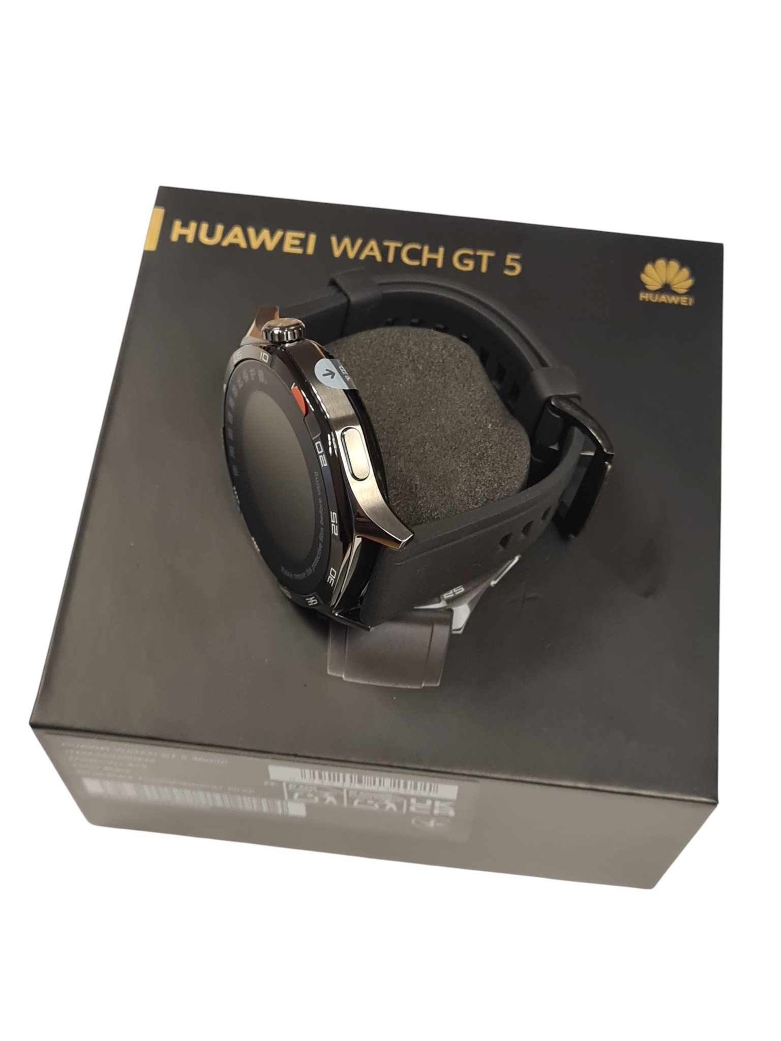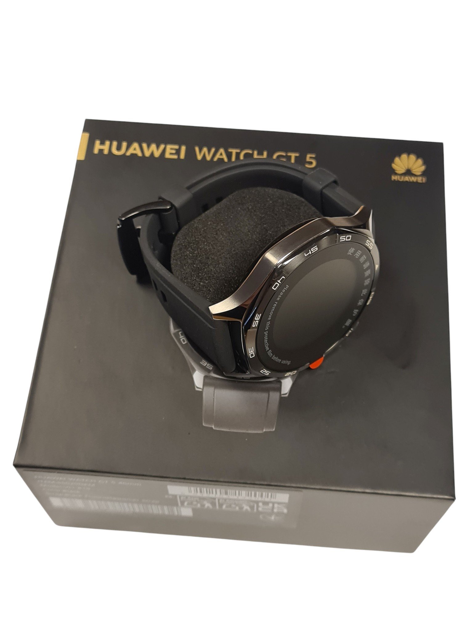 Ekspozicinis, nenaudotas, dar su lipdukais Huawei Watch GT 5 (46mm) išmanusis laikrodis. Laikrodis sujungia elegantišką ir sportišką išvaizdą su plačiu funkcijų spektru — tai stilingas asmeninis palydovas kasdienei veiklai, aktyviam laisvalaikiui ir treniruotėms. Dizainas pabrėžia ploną, apvalų korpusą su aštriais kampais, kuris neatrodo masyvus ant riešo. „GT 5“ pasižymi labai geru baterijos veikimo laiku — 46 mm modelis pagal gamintojo duomenis gali siekti iki 14 dienų įprastu naudojimu. Taip pat laikrodis skirtas sveikatos bei sporto stebėjimui: turi daug jutiklių (širdies ritmas, deguonies kiekis kraujyje, miego analizė, streso lygis), GPS su keliomis palydovų sistemomis, daugybę sporto režimų. Suteikiama 6 mėnesių garantija.