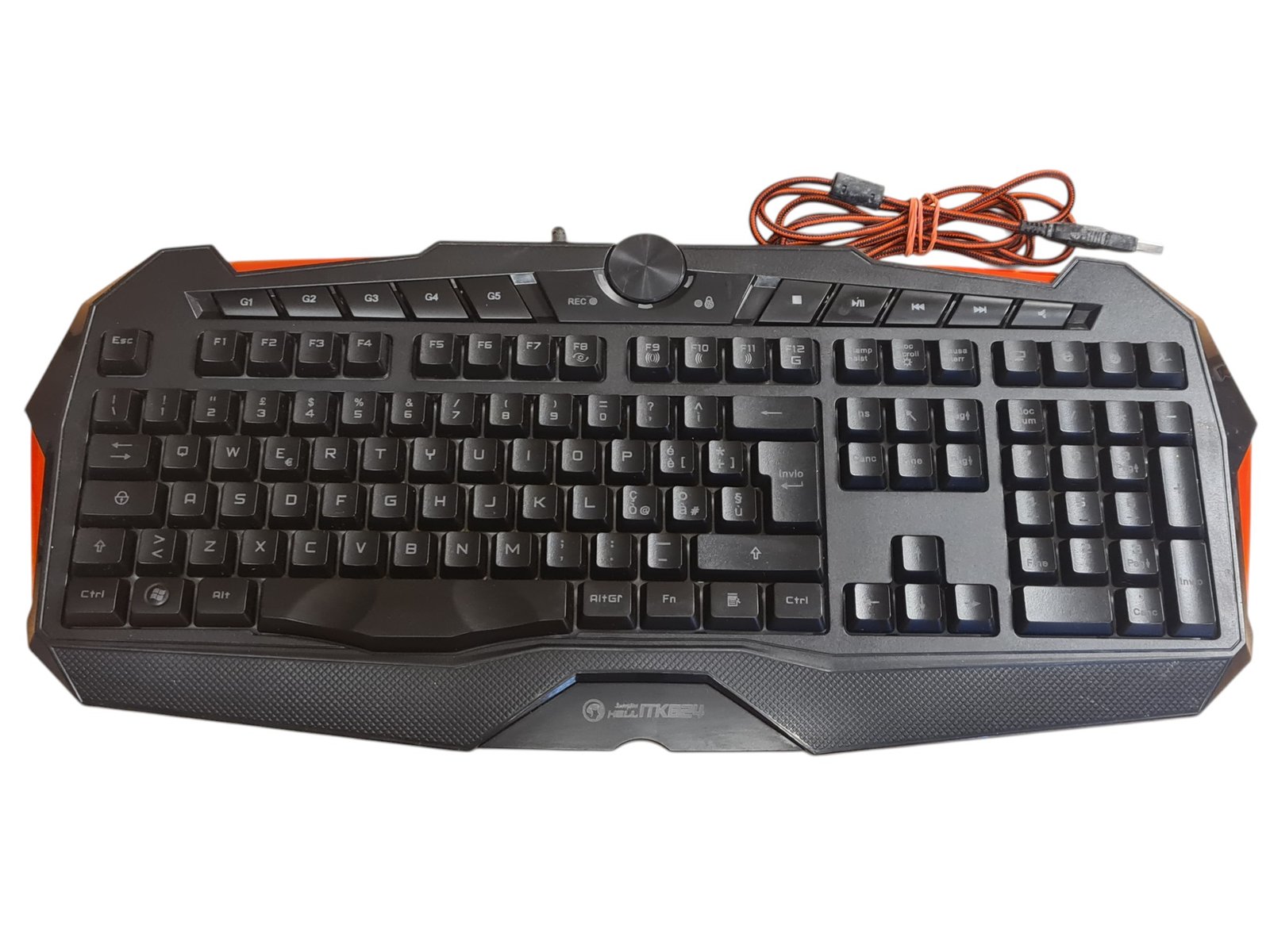 Naudota iTek Scorpion Hell ITK824 Keyboard. iTek Scorpion Hell ITK824 – tai biudžetinė gaming klaviatūra, skirta kasdieniam naudojimui ir paprastiems žaidimams. Klaviatūra yra pilno dydžio, su spalvotu apšvietimu, papildomais makro ir multimedijos mygtukais. Yra parduodamos prekės pabraižymai, nėra galinių stoveli, klaviatūrai pakelti. Suteikiama 3 mėnesių garantija.