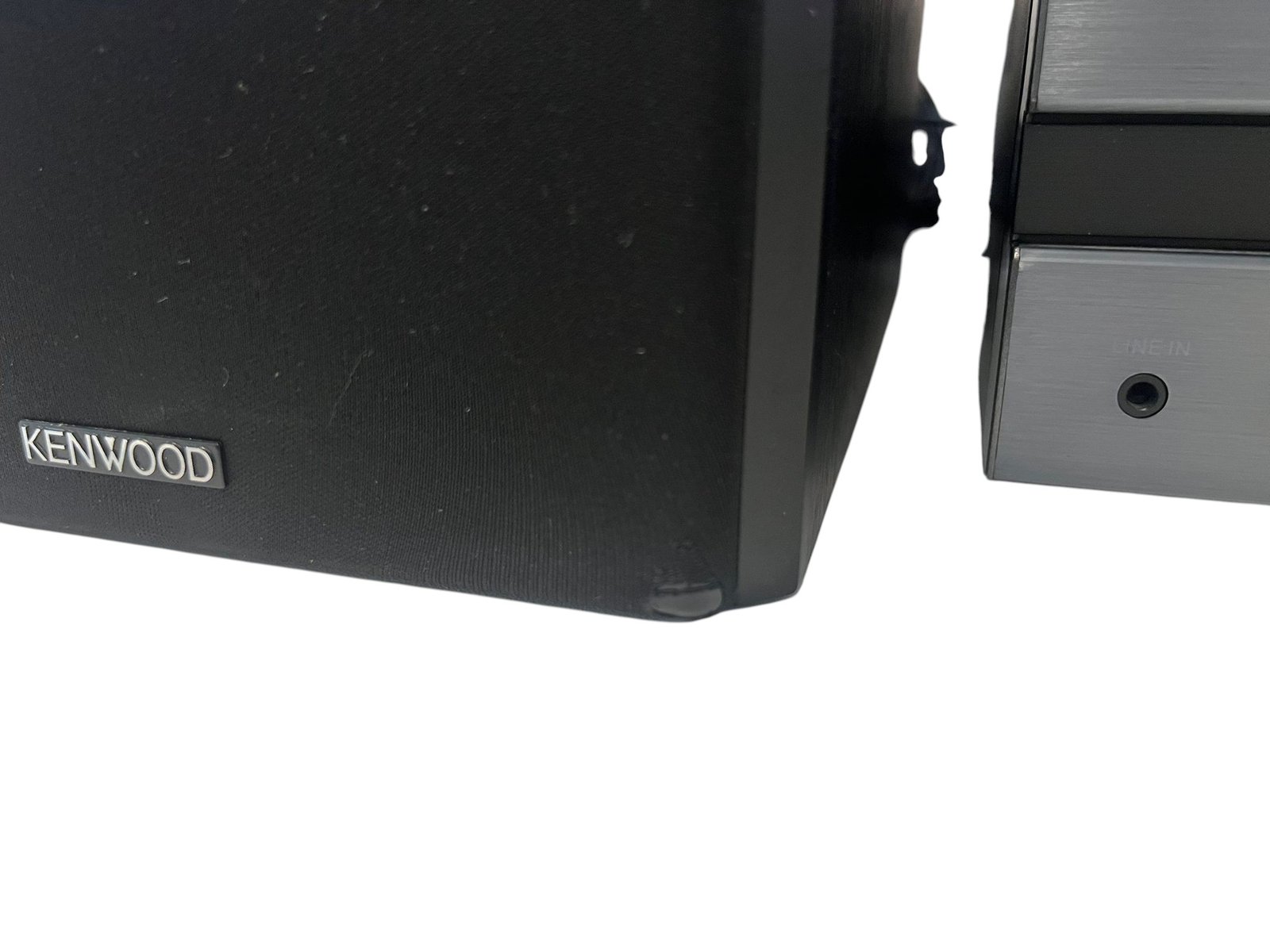 Komplektacija: Kenwood M-918DAB-H muzikinis centras, kolonėlės ir valdymo pultas.