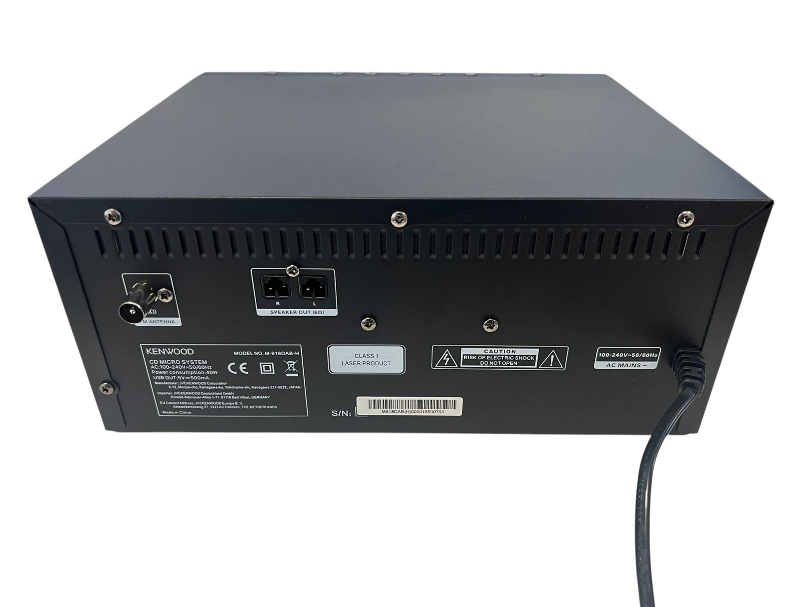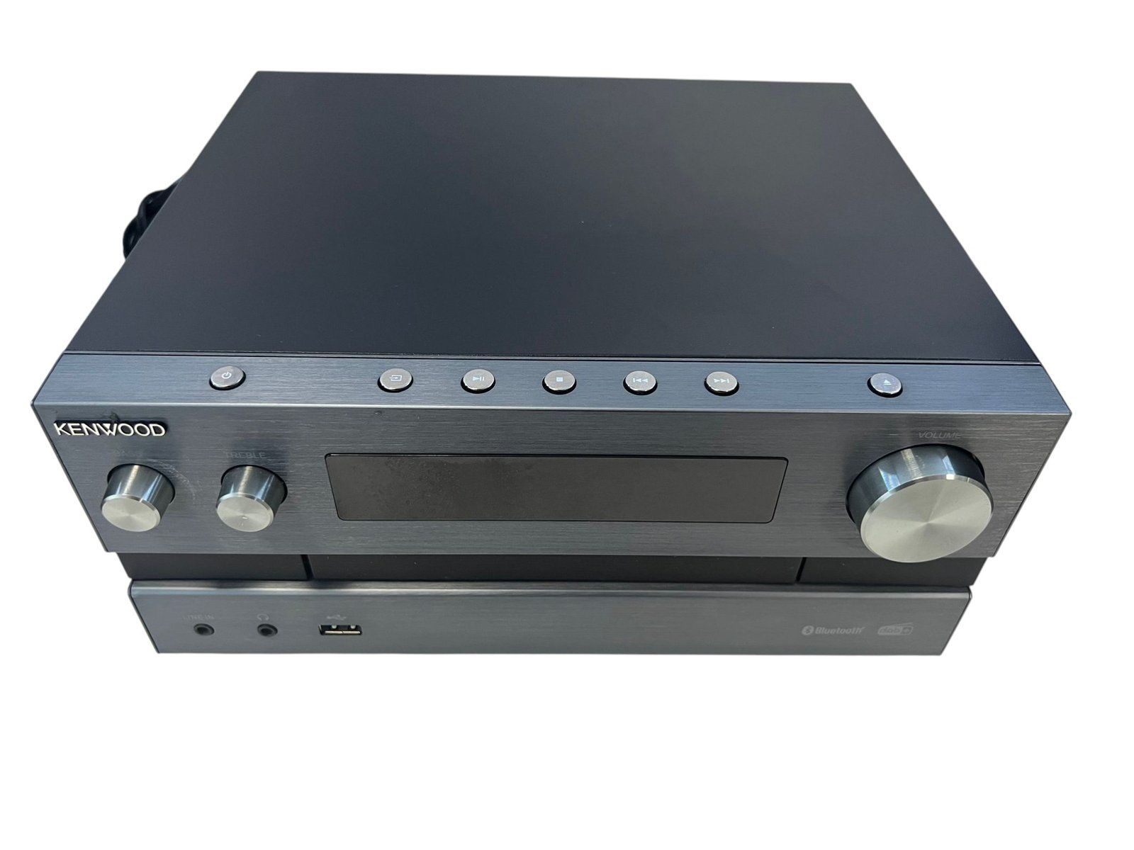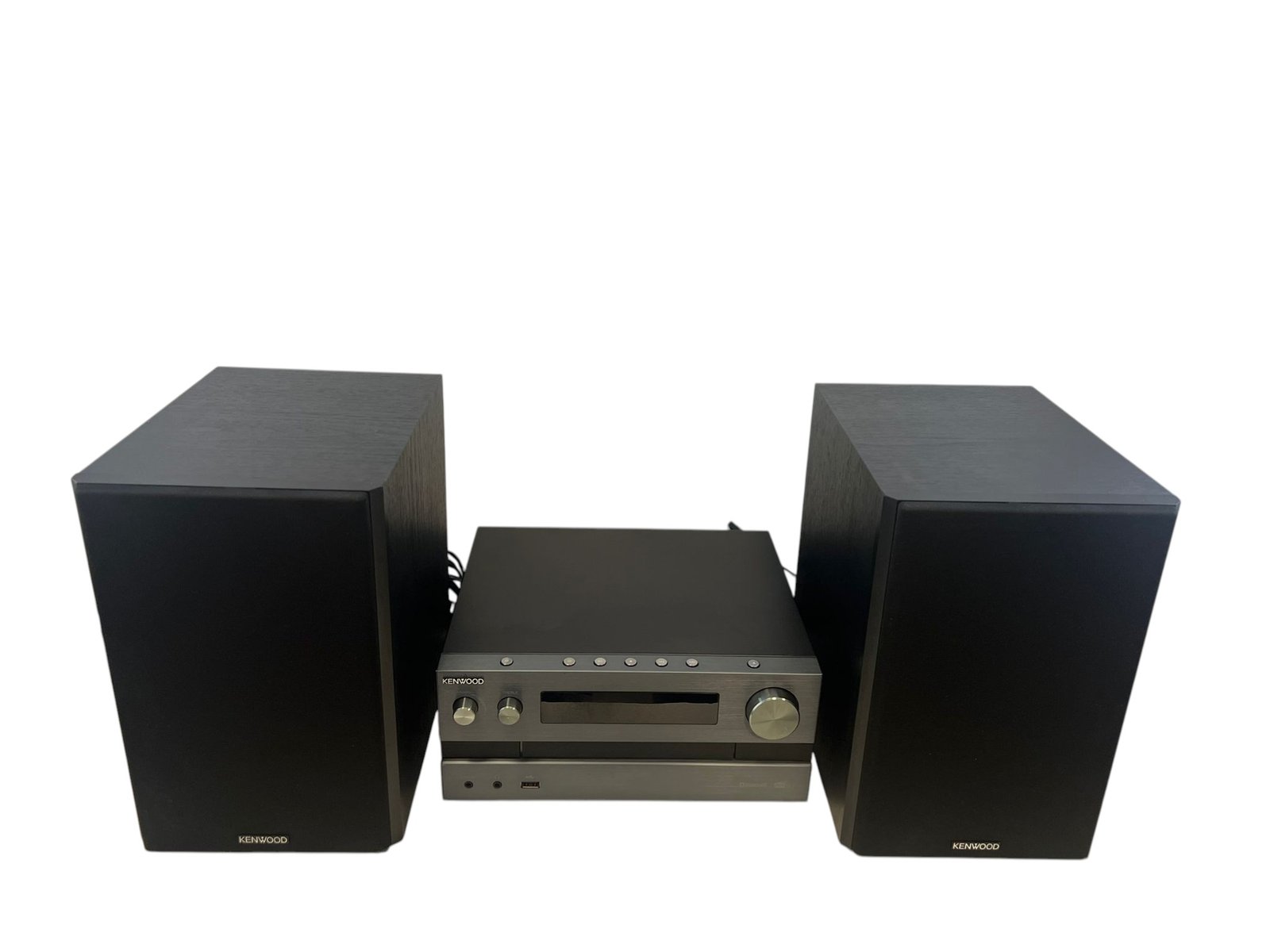 Naudotas, geros būklės Kenwood M-918DAB-H muzikinis centras su kolonėlėmis. Kenwood M-918DAB-H yra kompaktiška Hi-Fi garso sistema, kuri sujungia tradicinės CD/USB muzikos atkūrimą, skaitmeninę DAB+ bei FM radiją ir belaidį muzikos srautinį perdavimą per Bluetooth. Sistema pasižymi moderniu dizainu su metaliniu priekiniu paneliu ir erdviniu garsu per komplekte esančias kolonėles.Suteikiama 3 mėnesių garantija.