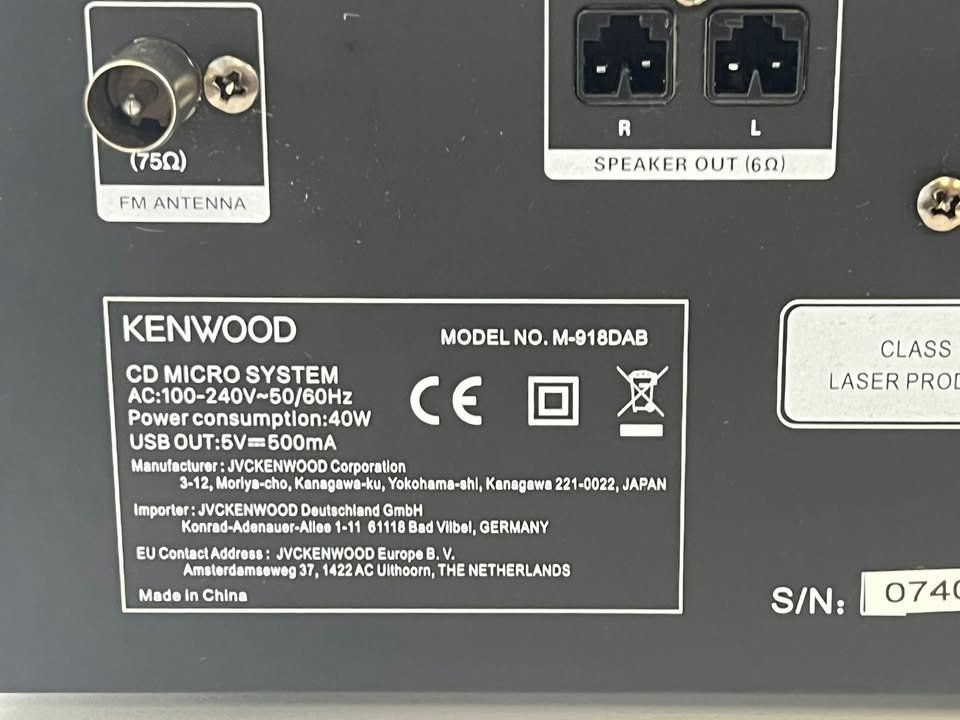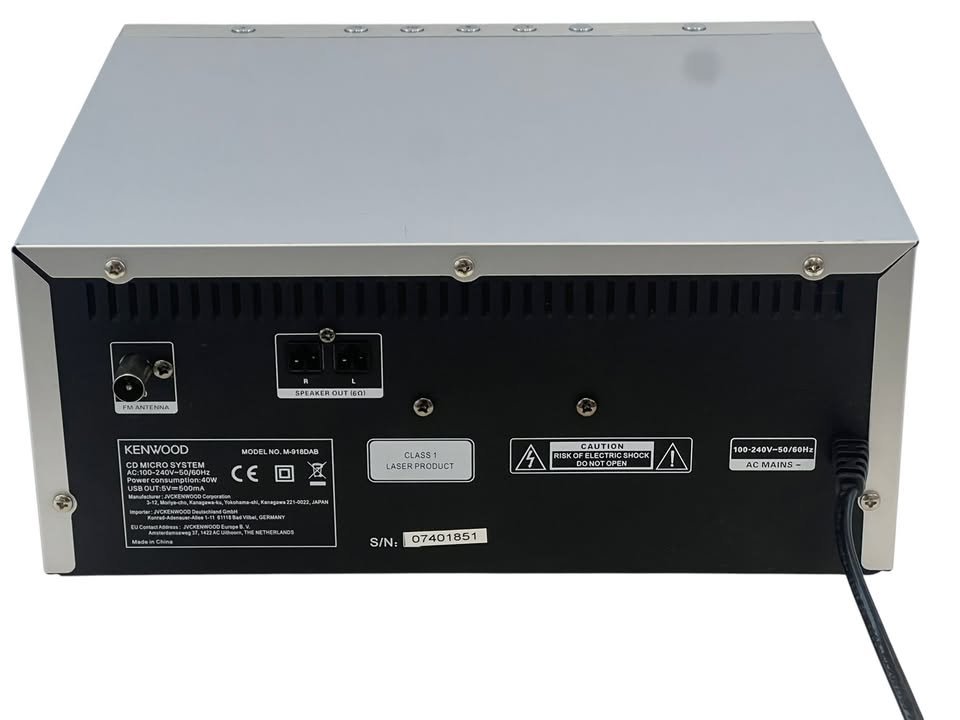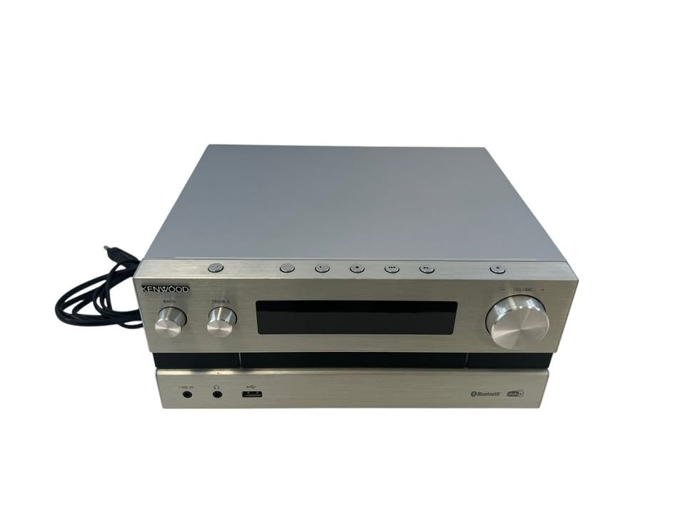 Naudotas, geros būklės Kenwood M-918DAB muzikinis centras. Kenwood M-918DAB – kompaktiškas micro Hi-Fi muzikos centras su CD grotuvu, DAB+ skaitmenine radija, USB ir Bluetooth ryšiu, skirtas skaitmeninei ir tradicinei muzikai groti iš įvairių šaltinių. Suteikiama 3 mėnesių garantija.