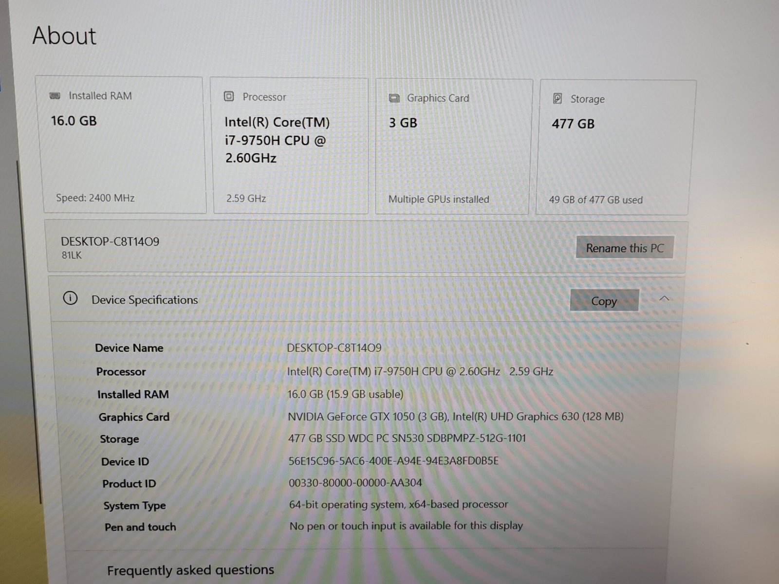 - Procesorius (CPU): Intel Core i7-9750H @ 2.6 GHz (12 CPU’s)