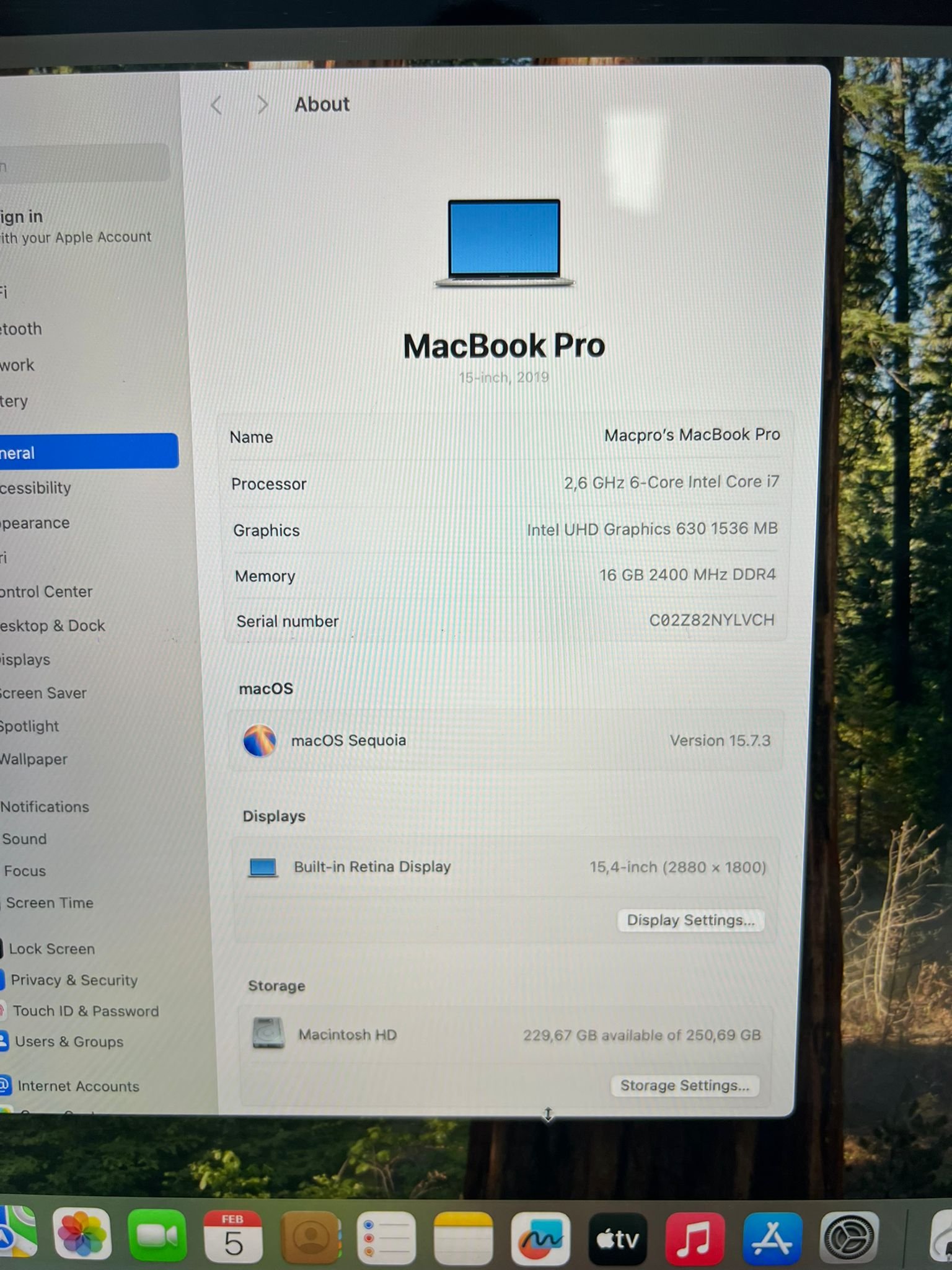 MacBook Pro 15″ TB 2019 6-Core Intel Core i7 16GB/256GB
