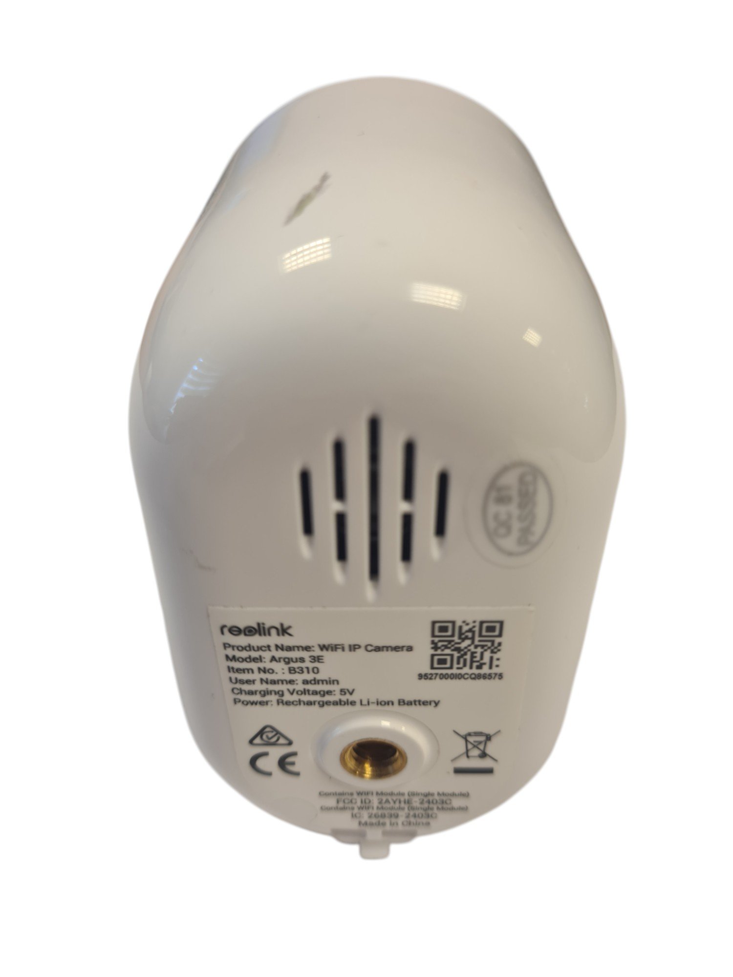 Reolink Argus 3E yra 100 % belaidė stebėjimo kamera, veikianti iš įkraunamos 5200 mAh ličio baterijos arba per 3 W saulės panelę. Kamera aptinka žmones, automobilius ir gyvūnus naudodama PIR jutiklį su AI filtravimo sistema, taigi pranešimai yra minimalūs ir tikslingi. Turėdama spotlight LED apšvietimą, ji gali filmuoti spalvotai ir naktį. Fotoaparatas palaiko vietinį įrašymą į microSD kortelę (iki 128 GB) ir suderinama su Reolink Home Hub sistema be papildomų prenumeratų.
