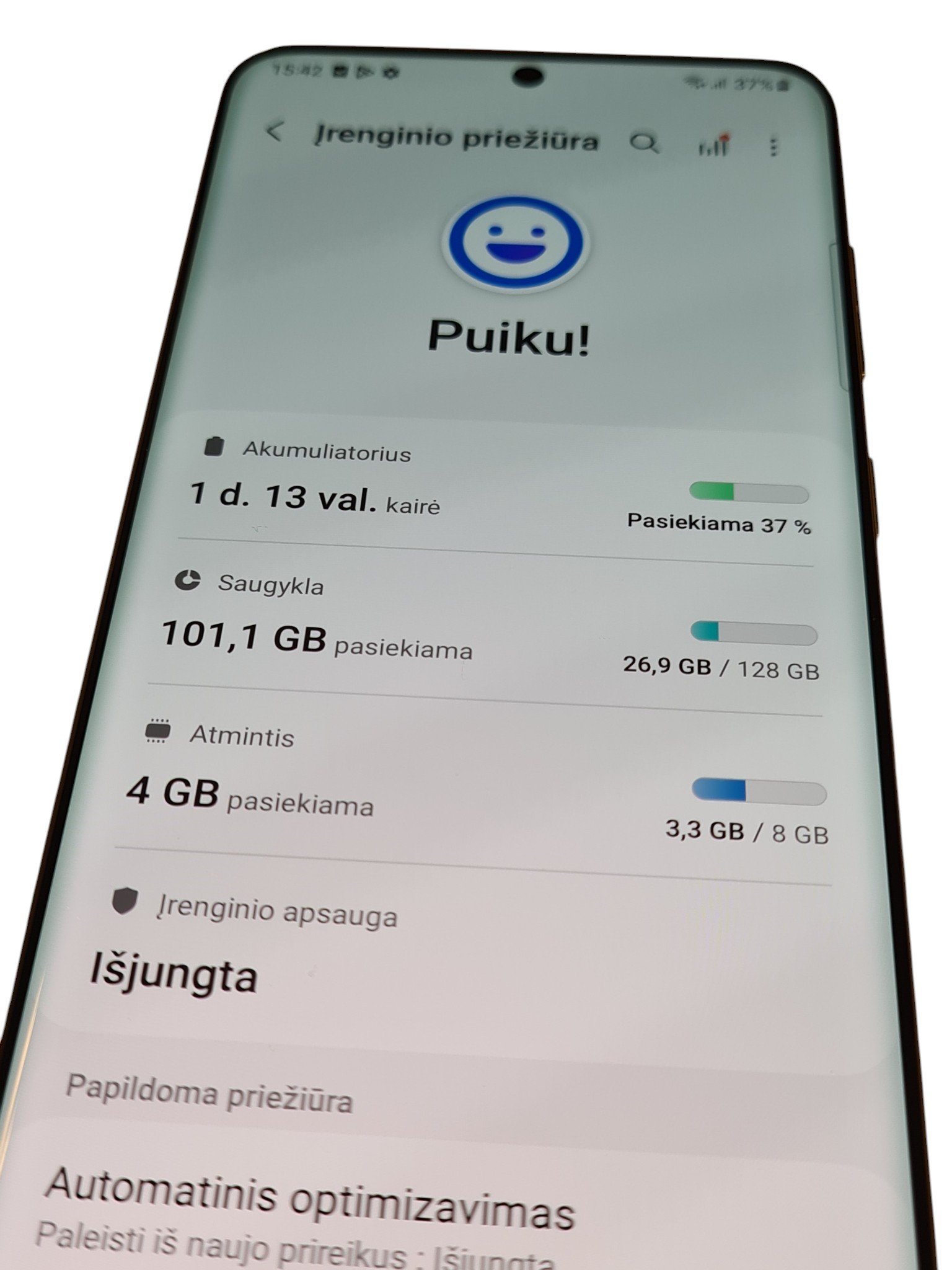 - 128 GB vidinė atmintis (papildomai dedasi microSD)