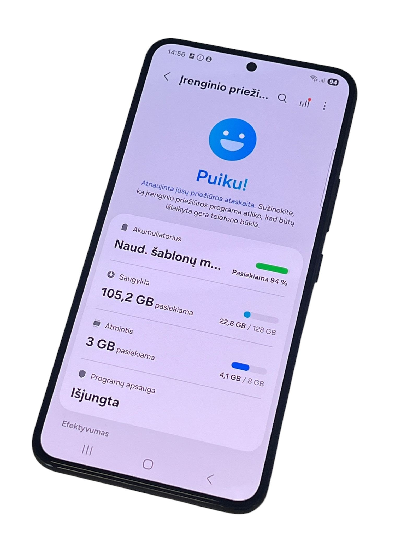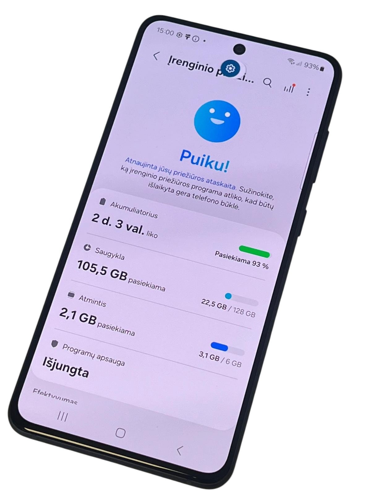 - Ekranas: 6.4″ Dynamic AMOLED 2X, 2340×1080 (Full HD+), 120 Hz atnaujinimo dažnis