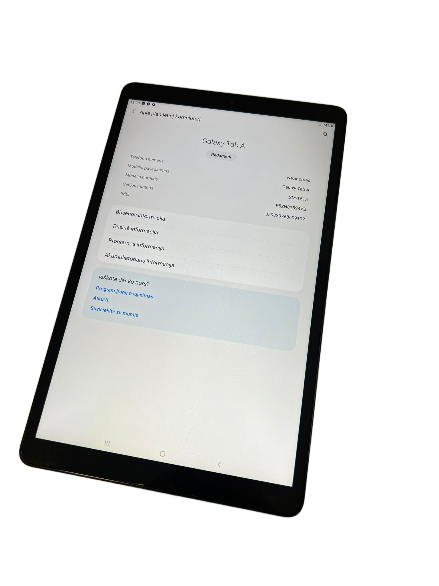 Naudota, geros būklės Samsung Galaxy Tab A +SIM (SM-T515) planšetė. Tai 10.1 colio „Samsung“ planšetė su metaliniu korpusu, LTE ryšio palaikymu ir ilgu baterijos veikimo laiku. Skirta kasdieniam naudojimui – naršymui internete, filmų peržiūrai, socialiniams tinklams ir lengvoms užduotims. Suteikiama 3 mėnesių garantija.