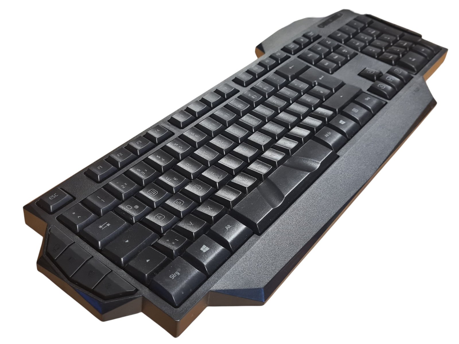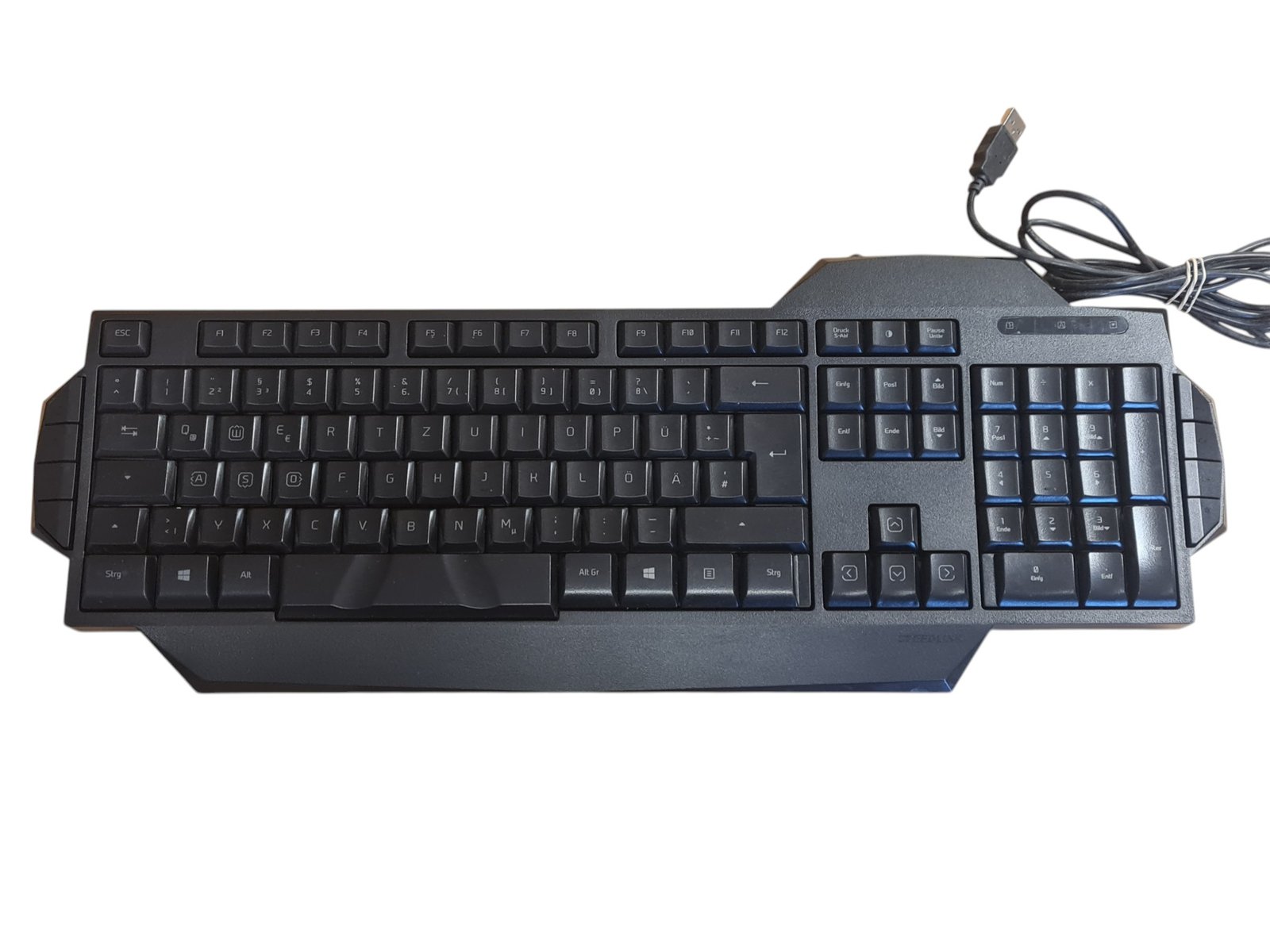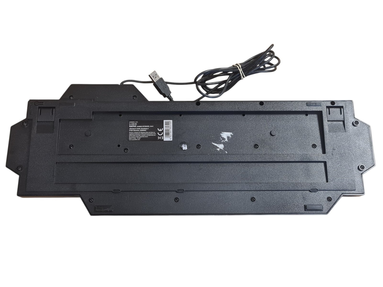 Naudota SPEEDLINK Rapax Gaming Keyboard SL-6480-BK. Tai paprasta laidinė „gaming“ klaviatūra su raudonu LED apšvietimu, skirta kasdieniam naudojimui ir žaidimams. Ji turi išryškintus žaidimų klavišus (WASD), papildomus multimedijos mygtukus ir ergonomišką dizainą patogesniam naudojimui. Veikia be papildomų tvarkyklių – prijungi ir naudoji („plug & play“). Yra parduodamos prekės pabraižymai. Suteikiama 3 mėnesių garantija.